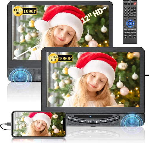 پخش‌کننده DVD قابل‌حمل ۱۲ اینچی برای خودرو با ورودی HDMI با کیفیت 1080P، پخش‌کننده DVD شارژی خودرو FELEMAN با دو صفحه‌نمایش و انتقال سیگنال دیجیتال Full HD، پشتیبانی از USB و قابلیت ذخیره آخرین وضعیت (۱ پخش‌کننده + ۱ مانیتور)»
