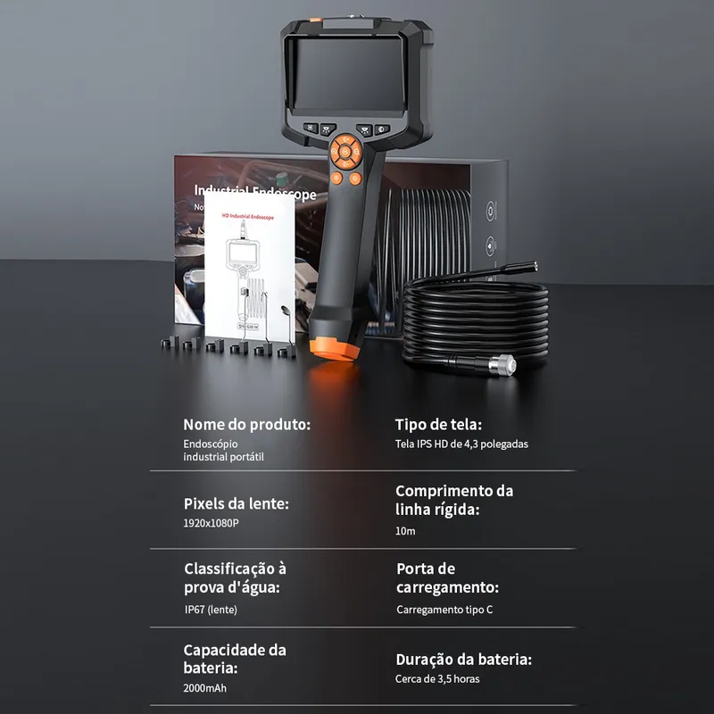 دوربین بازرسی آندوسکوپ صفحه نمایش IPS 4.3 اینچی، دوربین بازرسی دستی 1080P HD دوربین بازرسی دیجیتال بورسکوپی IP67 با بورسکوپ کابلی نیمه سفت و سخت 16.5FT