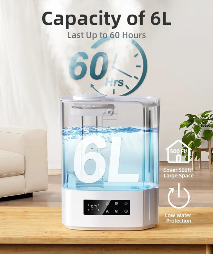 رطوبتساز اولتراسونیک ۶ لیتری BREEZOME مناسب اتاق خواب و فضاهای تا ۵۰۰ فوت مربع