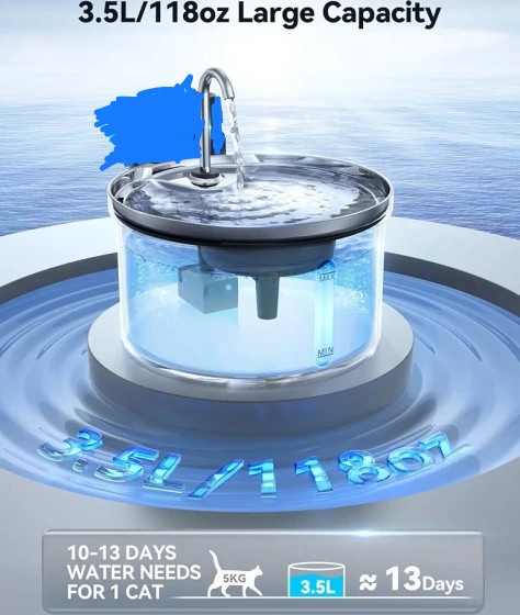 این آبخوری آب را به صورت مداوم پمپاژ میکند و از طریق شیر آب تعبیه شده حس شیر ظرف شویی را برای گربه تلاقی میکند و گربه شما را ترغیب به آب خوردن میکند،آبی تصفیه شده و زلال که باعث می شود گربه شما مجاری ادراری سالمی داشته باشد