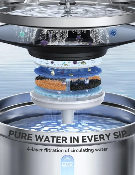 آب تمیز برای گربه: فیلتر آبخوری گربه بسیار خوب است، برای بینی خز شما مناسب است زیرا مهم است که همیشه آب تمیز در دسترس داشته باشید، سیستم فیلتر ۵ مرحلهای به طور مداوم آب تازه و سالم را برای حیوانات خانگی شما فراهم میکند.