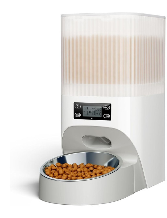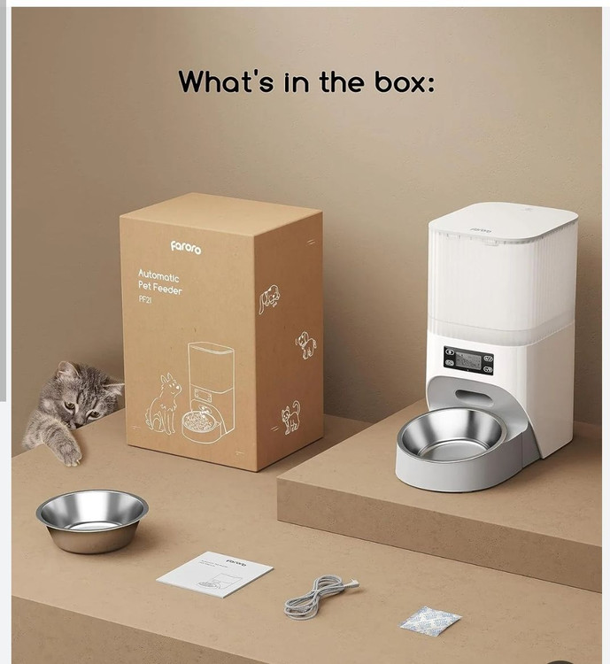 ظرف غذای اتوماتیک سگ و گربه ۴ لیتری با مائه أساسا و تنظیمات دستی تا ۶ وعده غذایی در روز با قابلیت ضبط صدا روی دستگاه برند Faroro