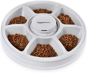 غذادهنده هوشمند AmazonBasics با ۶ بخش مجزا برای غذای خشک یا نیمهمرطوب، امکان تنظیم زمان تغذیه تا ۲۴ ساعت را فراهم میکند. مناسب برای زمانهایی که در خانه نیستید یا استراحت میکنید.