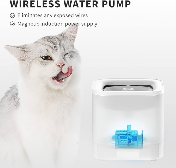 این فواره هوشمند دارای پمپ بیسیم نسل ۳.۰ است که بیصدا (۲۵ دسیبل)، ایمن و بادوام میباشد. فیلتر ۳.۰ چندلایه و فیلتر فومی پمپ ناخالصیها را حذف کرده و آب تازه و سالم را برای حیوان فراهم میکند.