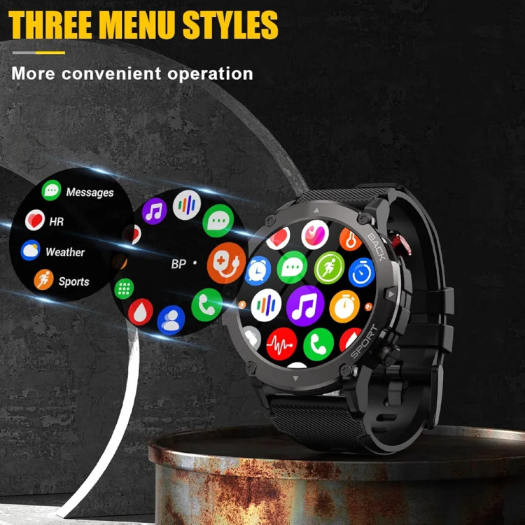 ساعت هوشمند اسپرت DECWIN مدل ZL54C با صفحهنمایش لمسی 1.32 اینچی و وضوح 360×360، مناسب برای آقایان و بانوان. دارای بدنه فلزی مقاوم و شیشه Gorilla Glass با استاندارد ضدآب IP68. پشتیبانی از تماس بلوتوثی (دریافت و شمارهگیری)، اعلان پیامها، سنجش ضربان قلب، فشار و اکسیژن خون، گامشمار، مانیتور خواب و بیش از 120 واچفیس قابل تنظیم از طریق اپ FitCloud Pro. سازگار با گوشیهای اندروید و iOS.