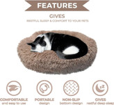 تخت گرد دوناتی مناسب گربهها و سگهای کوچک تا ۱۵ پوند (مدل ۲۳ اینچی برای گربهها تا ۲۵ پوند). ساختهشده از پارچه پلیپروپیلن و مخمل با پرشدگی ۲۵٪ بیشتر برای نرمی و گرمای بهتر. طراحی خودگرمشونده و ضداضطراب با لبههای ۸ اینچی برای پشتیبانی سر و گردن. زیره نرم و راحت برای خواب عمیق حیوان خانگی. کاملاً قابل شستشو با ماشین لباسشویی. مناسب برای ایجاد حس امنیت و آرامش.