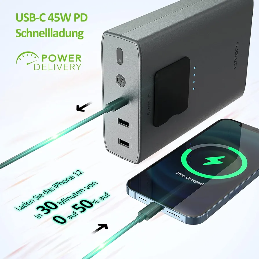 پاوربانک Omars با ظرفیت 24000 میلیآمپر | پاوربانک چندمنظوره دارای پریز AC برای شارژ لپتاپ، پهپاد (هلیشات) و سایر دستگاهها + پورت USB برای موبایل و تبلت
