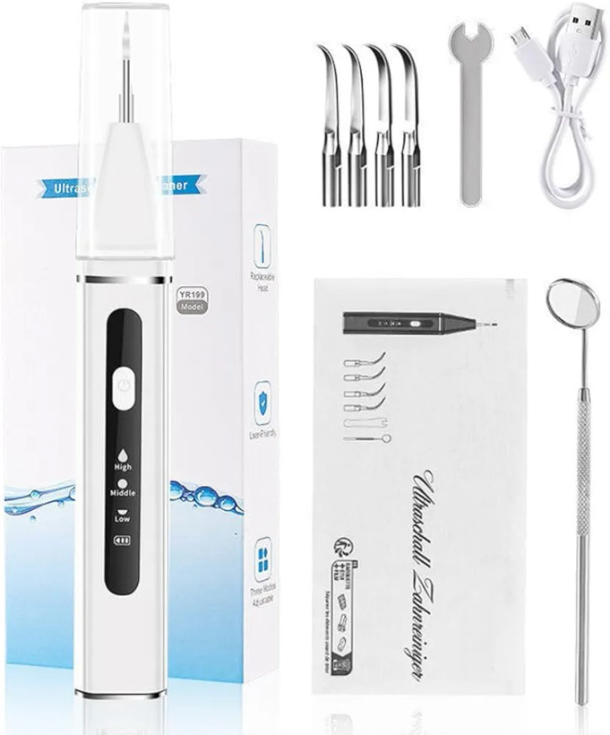 دستگاه جرمگیری دندان خانگی التراسونیک HANNEA شارژی با ۴ سری استیل ضدزنگ – ایمن برای لثه و آسان در استفاده