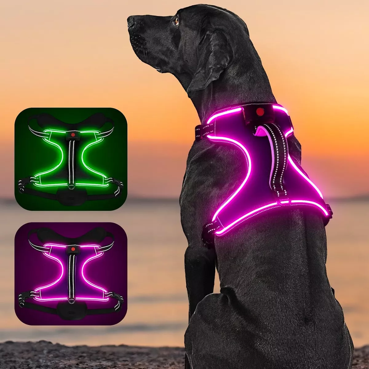 قلاده کتفی چراغ دار شارژی برای سگ برند YIAZIM | سایز M و رنگ سبز